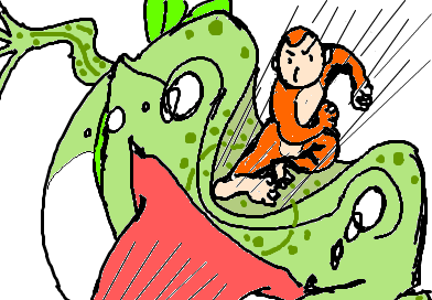 風に飛ばされていた小猿はギガグリーンにお辞儀をして、去っていきました。